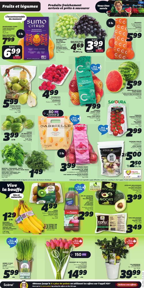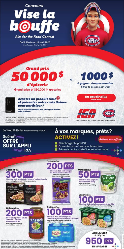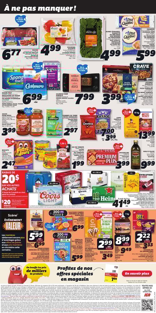 Consultez la plus récente circulaire en image du supermarché IGA, pour y découvrir tous leurs spéciaux de la semaine. De plus, vous avez accès aux promotions de la semaine sur tous les produits d’alimentation et d’épicerie.